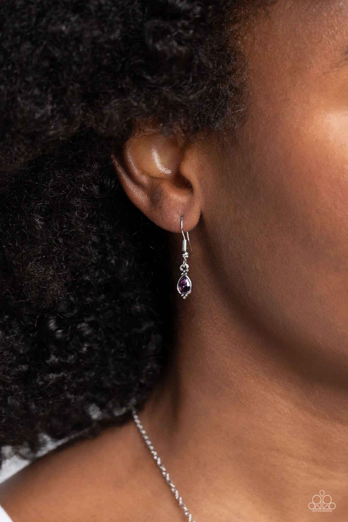 A dainty collection of gem teardrops, encased in dot-motif silver frames, coalesces around the neckline on a dainty chain. Alternating between shades of purple and amethyst, the scintillating collection creates a dainty pop of color against the whimsical design. Features an adjustable clasp closure.
