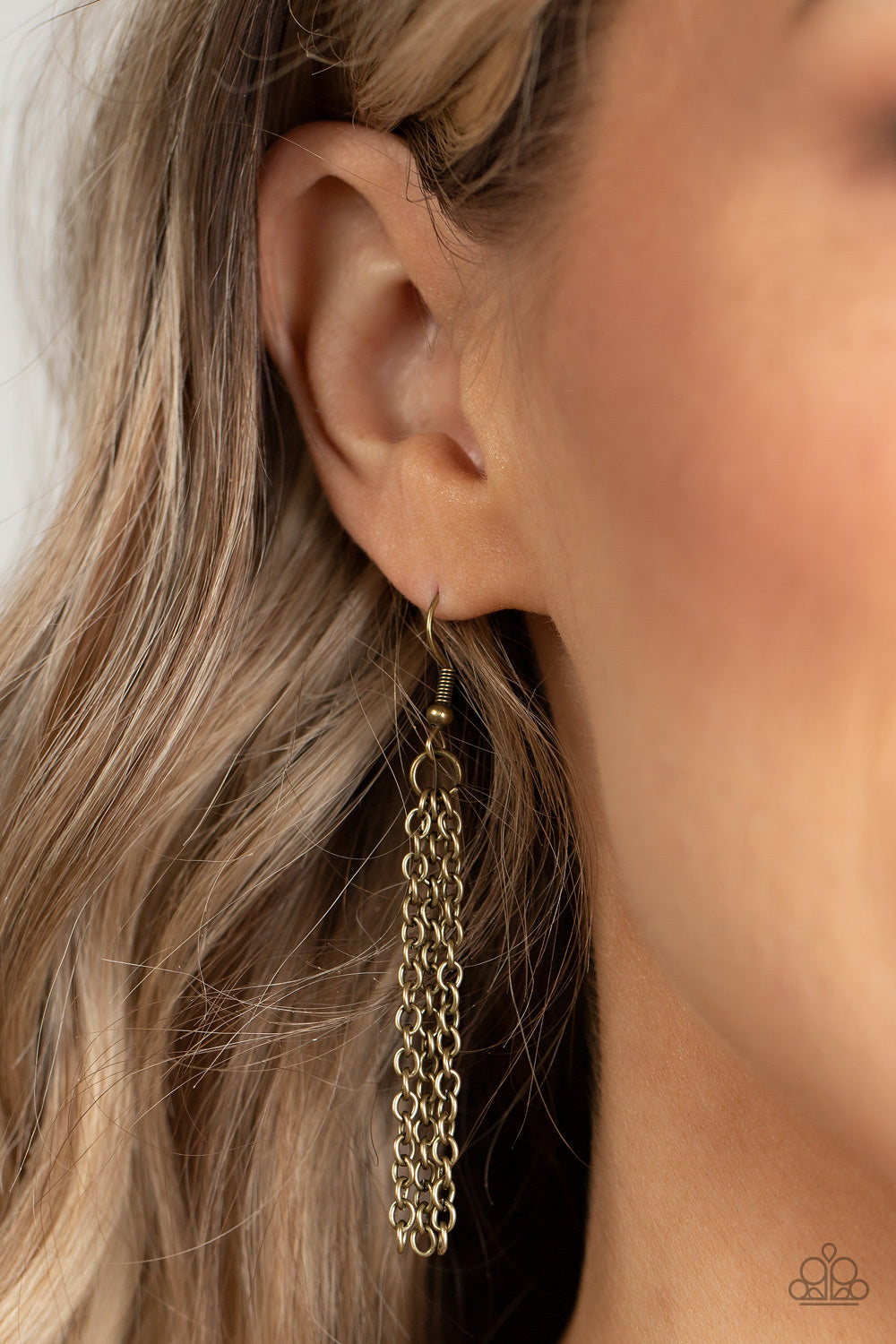 A dainty brass butterfly flutters atop a beveled brass disc, resulting in a whimsically rustic pendant at the bottom of an antiqued brass chain. Features an adjustable clasp closure.