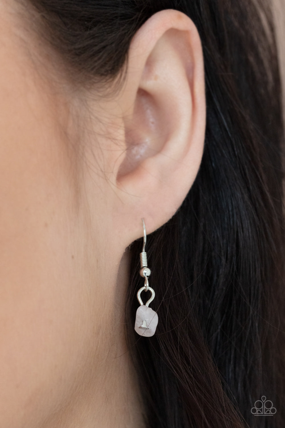 Dainty silver rods swing from the bottom of a bowing silver fitting that attaches to sections of pink pebbles at the bottom of a silver chain, creating a whimsically seasonal display. Features an adjustable clasp closure.